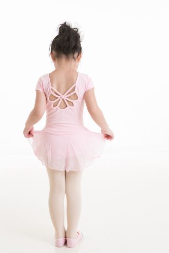 短袖後背鏤空花朵連身舞裙